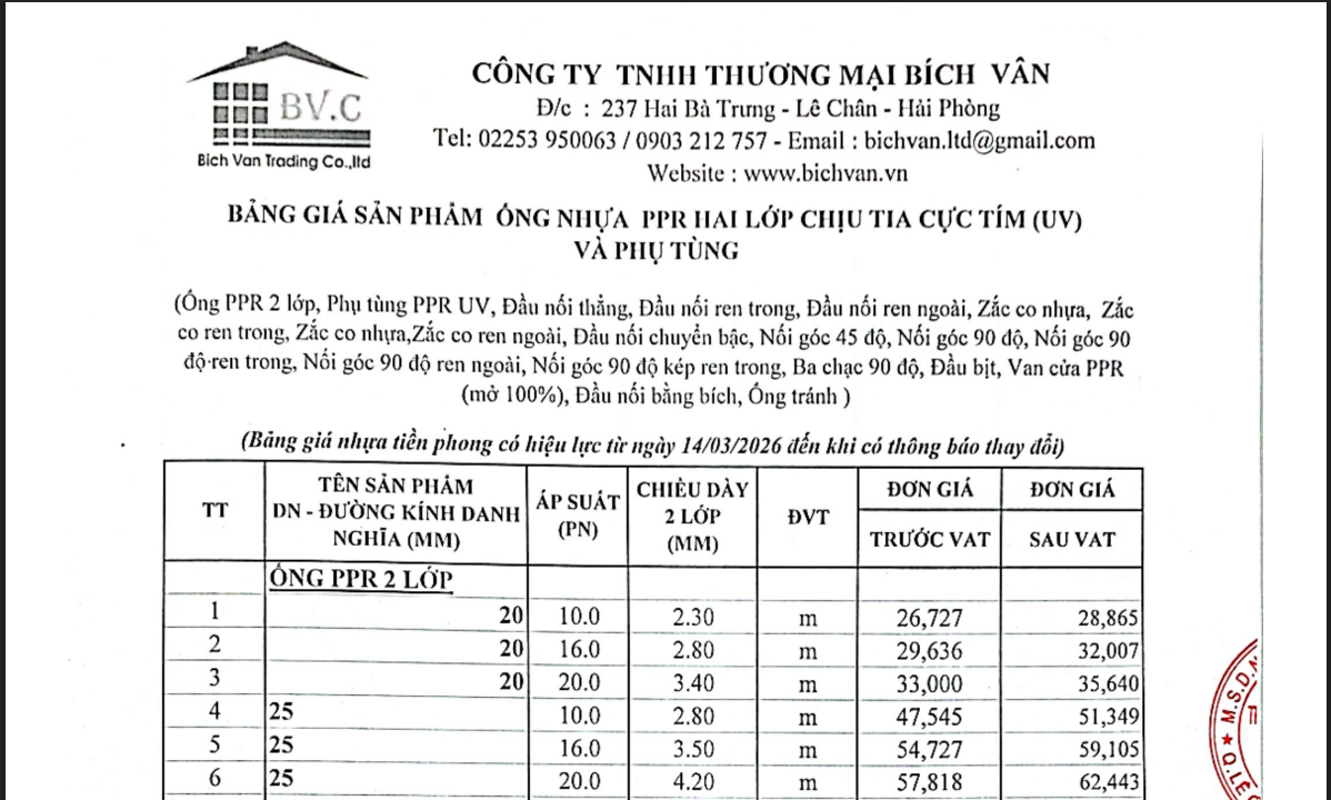 Giá ống nhựa, Bảng Giá Sản Phẩm & Catalogue